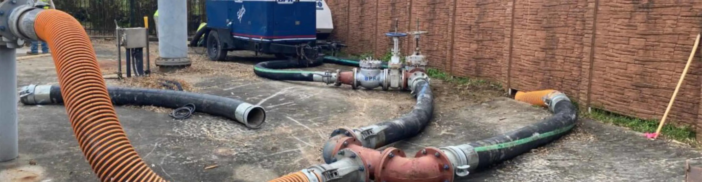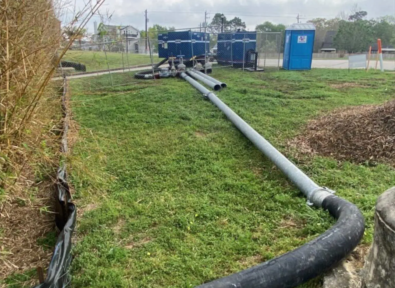 This lift station rehabilitation project in League City required the plant to be taken offline, relying entirely on a temporary bypass system to keep sanitary sewer flows moving to the treatment plant. With two incoming lines feeding the station, the project demanded a dual‑system bypass using four 6” vacuum‑assist diesel sound‑attenuated pumps.