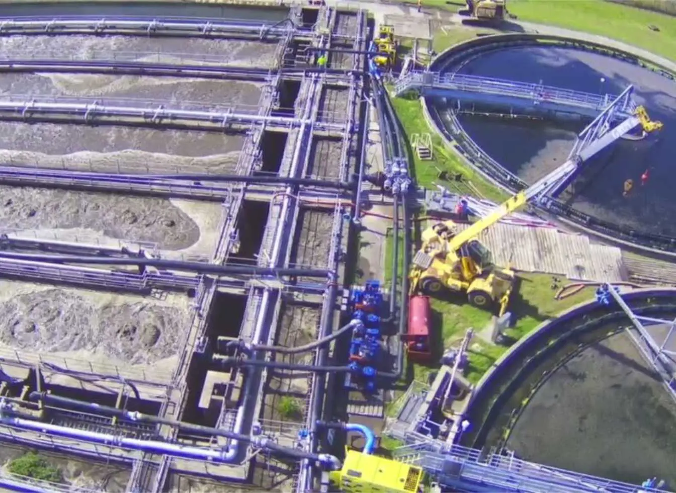 During Phase 3, HDPE pipework needed to run between basins, and all pipe fusing had to be completed on a narrow walkway where the pipe itself would also sit, leaving limited space for equipment and movement.